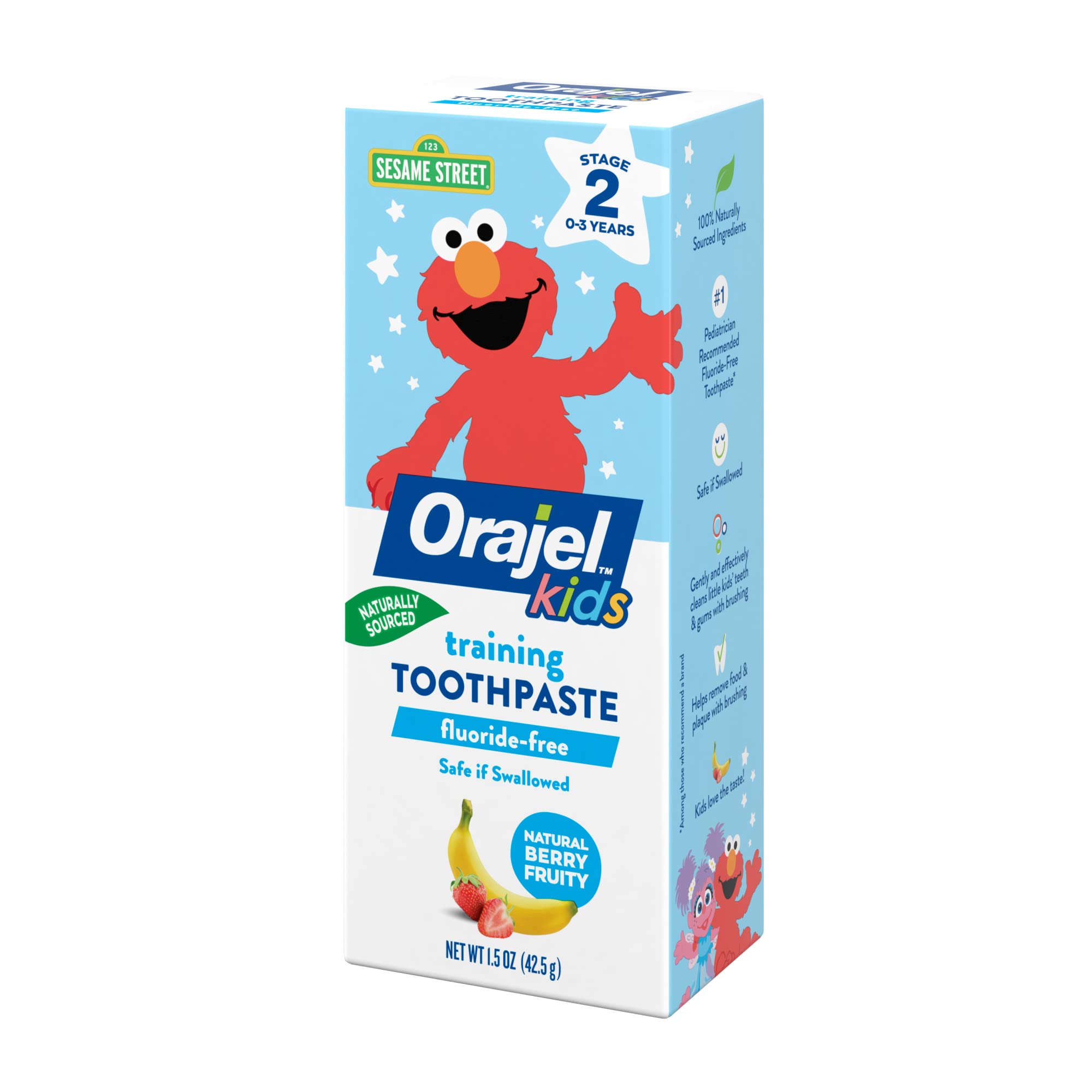 Orajel Kids Elmo Training Toothpaste Fluoride-Free; Pediatrician Recommended Fluoride-Free Toothpaste*, 1.5oz Tube