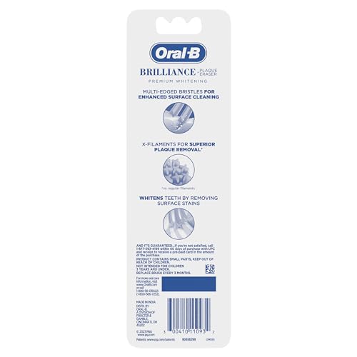 The Oral-B Brilliance 2 Pack in the colors Sky Blue and Slate Gray is beautifully designed with a stylish grip. The multi-edged plaque eraser bristles help to provide an enhanced clean. This x-filament technology provides superior plaque removal versus regular filaments while helping to polish away surface stains for a whiter smile. Oral-B is the #1 Toothbrush Brand Used by Dentists Worldwide. A new toothbrush cleans 95% better in hard-to-reach areas compared to a worn out one. Oral-B Brilliance is a great addition to any bathroom to bring that ROYAL whitening experience to your everyday.