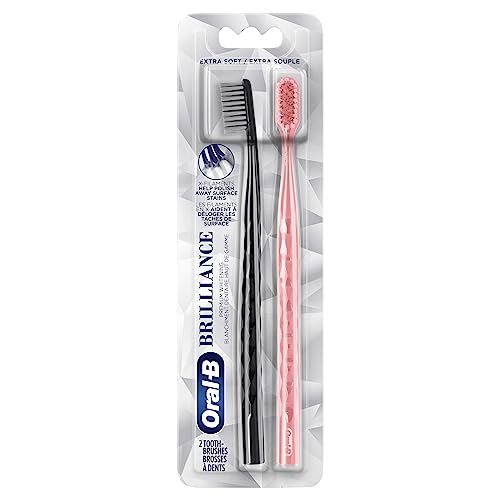 The Oral-B Brilliance 2-pack is ultra soft and beautifully designed with a stylish grip. They feature ultra dense bristles to ensure a soft gentle clean while using X-filaments to help polish away surface stains. Oral-B is the #1 Toothbrush Brand Used by Dentists Worldwide. A new toothbrush cleans 95% better in hard-to-reach areas compared to a worn out one. Oral-B Brilliance is a great addition to any bathroom to bring that ROYAL whitening experience to your everyday. Colors may vary.