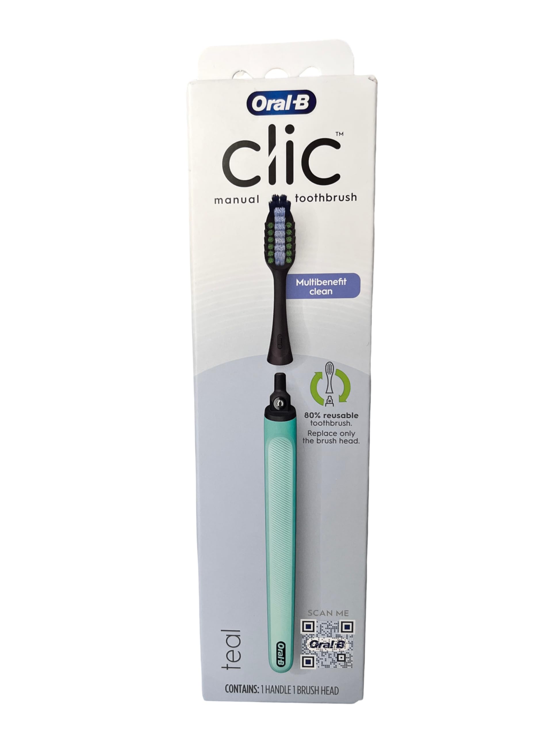 Oral-B Clic manual toothbrush delivers next generation cleaning performance from Oral-B. It provides exceptional plaque removal performance removes plaque on teeth and along the gum line. Brush heads have been designed with dentists and feature multiple patented technologies that give you remarkable cleaning performance and a truly comfortable cleaning experience. The handle is beautifully designed and durable made from a unique composite material based largely on natural minerals and equipped with the unique CLICfit mechanism. Oral-B Clic has a replaceable brush head so it uses up to 60% less plastic over two years. Oral-B Clic Expect more from a toothbrush. *Uses 60% less plastic over two years compared to a normal manual toothbrush that is changed every 3 months as recommended by dentists