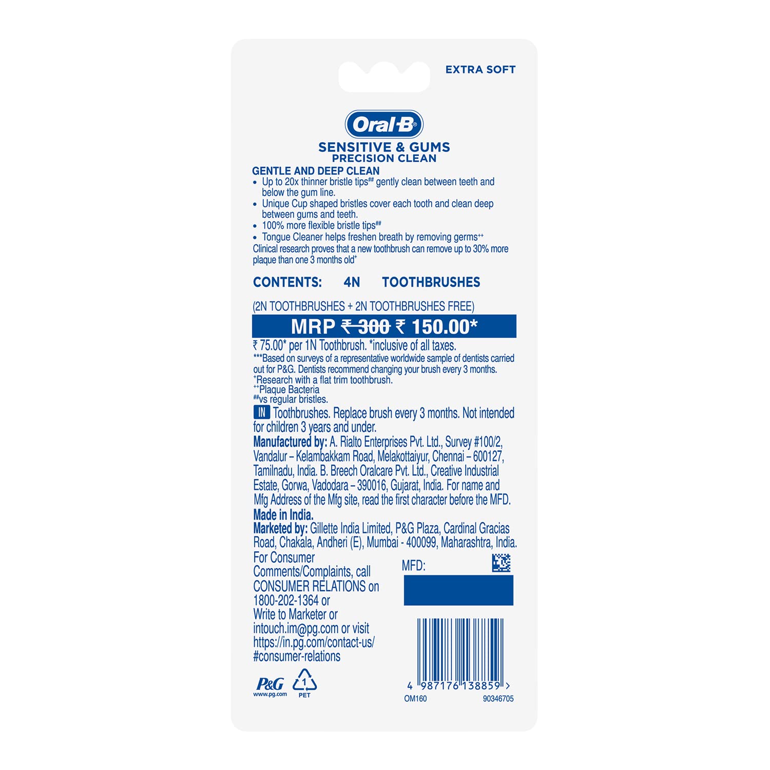 Oral-B is the World's No. 1 Toothbrush brand used and recommended by dentists worldwide which brings to you and your family revolutionary brushing solutions with best in class technology to ensure you and your family get healthier and cleaner mouth. Oral-B Criss Cross Ultra Thin Sensitive toothbrush is uniquely engineered for exceptional plaque removal while being gentle on gums. Oral-B Criss Cross bristles angled at 15° has been clinically proven to remove up to 99% more plaque than a regular manual toothbrush. Ultrathin bristles have up to 20x thinner bristle tips that stay soft on gums and have 2x deeper reach between teeth vs regular bristles. Extra-long Power Tip bristles hit areas where plaque builds up and Criss Cross bristles flex and straighten to get in-between teeth while still being gentle on your gums.