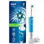 Introducing the Oral-B Vitality Blue Rechargeable Rotating Electric Toothbrush the essential toothbrush for achieving a professional clean. Designed for adults this electric toothbrush offers a superior brushing experience with its 2D Cleaning Action that oscillates and rotates to remove up to 100% more plaque compared to a regular manual toothbrush. The round brush head with crisscross bristles angled at 16 degrees cups each tooth for a more effective clean. Featuring a built-in professional 2-minute quadrant timer it ensures you brush for the dentist-recommended duration vibrating every 30 seconds to alert you to change the brushing area. With two brushing modesDaily and Sensitiveit caters to both regular and sensitive teeth and gums. Waterproof with an IPX7 rating and backed by a 2-year warranty this toothbrush is designed for durability and ease of use. Experience the dentist-inspired round brush head from Oral-B the #1 brand recommended by dentists worldwide and enjoy a 30-day money-back guarantee for a risk-free trial. Make the Oral-B Vitality Blue a part of your daily routine and experience the difference in oral care with advanced plaque removal and improved gum health. Oral B Vitality is compatible with a variety of Oral-B toothbrush heads including CrossAction Precision Clean Sensitive Clean and more offering versatility to suit your specific needs.