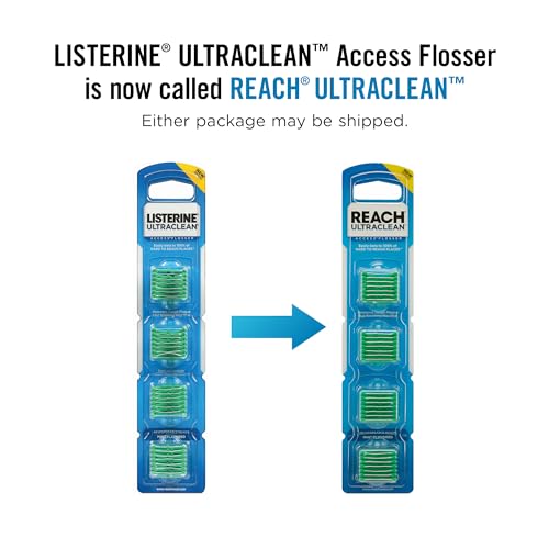 Easily reach between your teeth with the Listerine Ultraclean Access Flosser Refill Heads. This pack of 28 disposable mint flavored floss heads features high-tenacity yarn to withstand breakage. Flossing removes plaque on teeth that brushing may miss and is an important step in your oral care routine. Easily get to 100% of hard to reach places with this floss. For use with the Listerine Ultraclean Access Flosser. Fluoride-Free