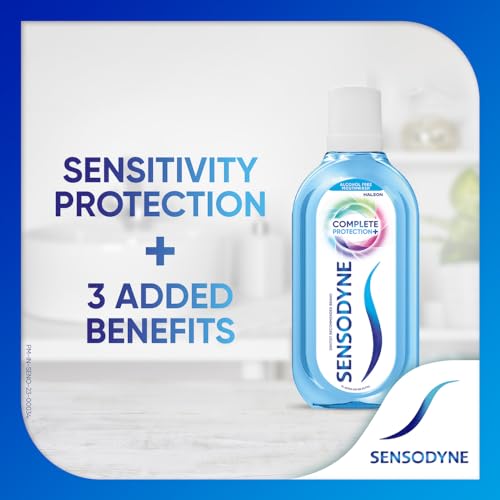 When the protective layer of teeth (enamel) is worn away or gums recede the dentine underneath can become exposed. When the exposed dentine comes in contact with hot cold sweet sour food and drinks or even toothbrush it can trigger a sharp short sensation called tooth sensitivity. Sensodyne has designed and formulated an entire range of oral care products (toothpaste brushes and mouthwash) to help protect people against tooth sensitivity while still providing the benefits of fluoride cavity protection and fresh breath. Normal eating or drinking exposes teeth to sugars or acids leaving them vulnerable to wear & tear specially at night. Sensodyne Complete Protection+ Mouthwash is an effective way to complete your oral health routine. It helps protect against tooth sensitivity as well as provides multiple oral care benefits like lasting freshness cavity protection and strong enamel. The formulation is uniquely designed without alcohol for apleasant usage experience without burning sensation in mouth. Cool Mint flavor gives lasting freshness while fluoride protects against tooth wear and cavities. Twice daily usage after brushing helps protects from sensitivity to help you enjoy your favorite foods and drinks without the worry of sensitive teeth. Sensodyne Complete Protection+ mouth wash is available in two pack sizes - 250 ml and 100 ml. For optimal care use together with a Sensodyne paste & toothbrush. Always follow instructions and guidance included on the pack before use. Sensitive teeth may indicate an underlying problem which needs prompt care by a dentist. If symptoms persist or worsens consult your dentist.