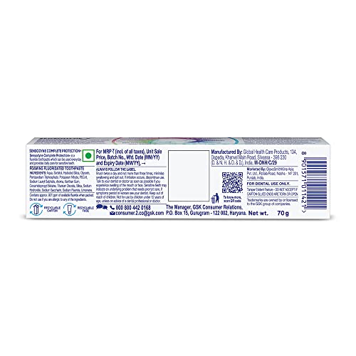 HomeHealth & PersonalPersonal CareOral CareSensodyne Toothpaste Complete Protection+, All in One daily oral care tooth paste for sensitive teeth, 70 gm & Sensitive Manual Toothbrush with Soft Bristles for adult Pack - 4 Pieces,Multicolor
