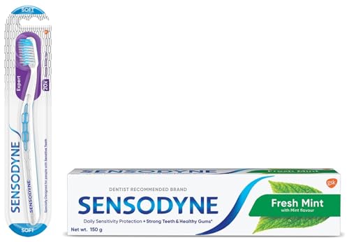 Sensodyne Toothpaste Fresh Mint Sensitive tooth paste for daily sensitivity protection 150 gmWhen the protective layer of teeth (enamel) is worn away or gums recede the dentine underneath becomes exposed. When the exposed dentine comes in contact with hot cold sweet or sour food and drinks it can trigger a sharp short sensation called tooth sensitivity. Sensodyne Fresh Mint is a daily fluoride toothpaste that helps protect against tooth sensitivity while still providing the benefits of a regular paste like strong teeth and health gums. It also has a mint flavor that keeps your mouth feeling fresh and clean. With twice daily brushing you can enjoy your favorite foods and drinks without the worry of sensitive teeth. Sensodyne Fresh Mint tooth paste is available in four packs - 75 gm 150 gm 450 gm (150 gm * 3) and 450 gm (150 gm - Buy 2 Get 1 free) combo pack. Always follow instructions and guidance included on the pack before use.Sensodyne Expert Toothbrush With 20X Slimmer & Soft Bristles 1 Piece (Multicolor)Sensodyne has designed and formulated an entire range of toothbrushes as well as toothpastes to accommodate different needs. Cleaning effectively is important for people especially with sensitive teeth - to help prevent plaque build-up while minimizing further wear and tear that can be caused by excessive brushing. Sensodyne Expert toothbrush is specially designed with experts for gentle yet thorough cleaning of teeth. It is scientifically crafted with cross active and soft bristles that provide effective cleaning of teeth while being gentle on teeth and gums. This toothbrush has 20X slimmer bristle tips compared to a regular flat trim manual toothbrush for cleaning hard-to-reach areas. This brush also comes with an advanced tongue cleaner and a non-slip ergonomic handle to ensure comfortable grip and good control while brushing. Sensodyne Expert tooth brush is available in two packs - Single (1 piece) and Triple pack (3 pieces - Buy 2 Get 1 free). Brush your teeth gently twice a day to avoid plaque build-up. Do not brush too hard as applying too much pressure can lead to overbrushing. It is recommended to change your toothbrush every three months. For optimal care of tooth sensitivity we recommend brushing in combination with Sensodyne toothpaste twice a day.