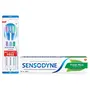 Sensodyne Toothpaste Fresh Mint Sensitive tooth paste for daily sensitivity protection 150 gmWhen the protective layer of teeth (enamel) is worn away or gums recede the dentine underneath becomes exposed. When the exposed dentine comes in contact with hot cold sweet or sour food and drinks it can trigger a sharp short sensation called tooth sensitivity. Sensodyne Fresh Mint is a daily fluoride toothpaste that helps protect against tooth sensitivity while still providing the benefits of a regular paste like strong teeth and health gums. It also has a mint flavor that keeps your mouth feeling fresh and clean. With twice daily brushing you can enjoy your favorite foods and drinks without the worry of sensitive teeth. Sensodyne Fresh Mint tooth paste is available in four packs - 75 gm 150 gm 450 gm (150 gm * 3) and 450 gm (150 gm - Buy 2 Get 1 free) combo pack. Always follow instructions and guidance included on the pack before use.Sensodyne Toothbrush: Sensitive tooth brush with soft rounded bristles for adults 3 pieces (ManualMulticolorBuy 2 Get 1 free)Sensodyne has designed and formulated an entire range of toothbrushes as well as toothpastes to accommodate different needs. Cleaning effectively is important for people especially with sensitive teeth - to help prevent plaque build-up while minimizing further wear and tear that can be caused by excessive brushing. Sensodyne Sensitive toothbrush is specially designed for gentle yet thorough cleaning of teeth. This toothbrush comes with soft round ended bristles - which flex on contact with surfaces and is therefore gentle on teeth and gums. The broad handle of the brush ensures a comfortable grip while the oval head and slim neck ensures reach in hard-to-reach areas achieving effective cleaning. Sensodyne Sensitive tooth brush is available in three packs - Single (1 piece) Triple pack (3 pieces - Buy 2 Get 1 free) and Quad pack (4 pieces). Brush your teeth gently twice a day to avoid plaque build-up. Do not brush too hard as applying too much pressure can lead to overbrushing. It is recommended to change your toothbrush every three months. For optimal care of tooth sensitivity we recommend brushing in combination with Sensodyne toothpaste twice a day.