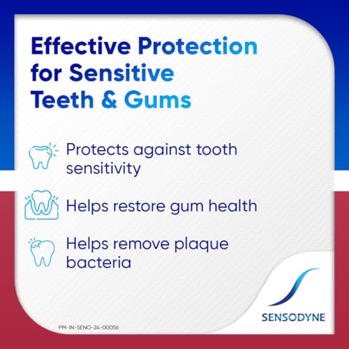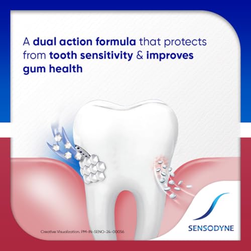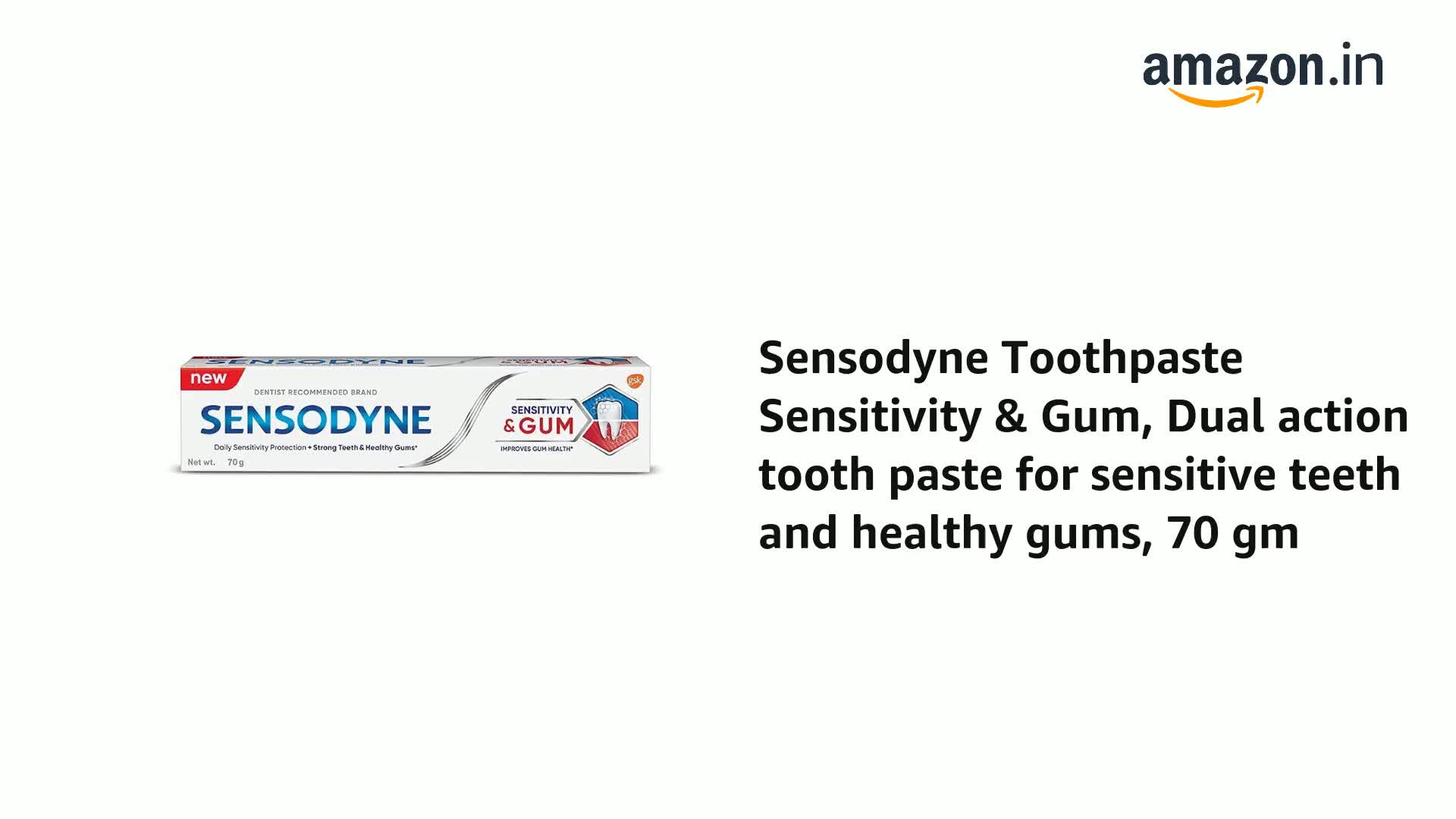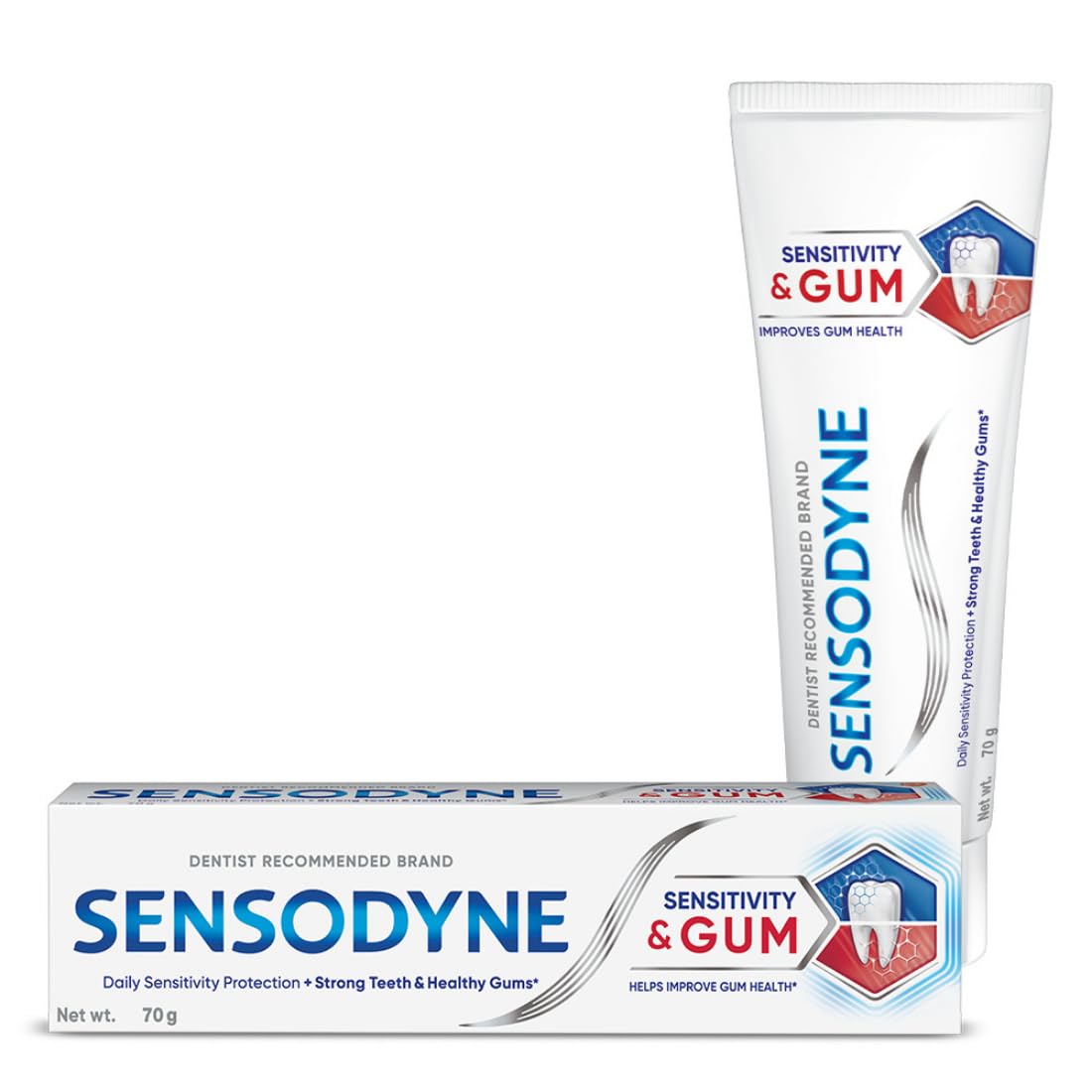 Often tooth sensitivity and gum problems go hand in hand. When the protective layer of teeth (enamel) is worn away or gums recede the dentine underneath becomes exposed. When the exposed dentine comes in contact with hot cold sweet or sour food and drinks it can trigger a sharp short sensation called tooth sensitivity. Meanwhile Gum problems are caused by a build-up of plaque bacteria. Sensodyne Sensitivity & Gum is a daily fluoride toothpaste that helps protect against tooth sensitivity and improves gum health while still providing the benefits of a regular paste. This toothpaste has a low abrasion dual action formula. It protects the teeth against sensitivity and helps target & remove plaque bacterial for healthy gums. With twice daily brushing you can enjoy your favorite foods and drinks without the worry of sensitive teeth. Sensodyne Sensitivity & Gum tooth paste is available in two packs - 70 gm and 140 gm (70 gm * 2) combo pack. Always follow instructions and guidance included on the pack before use.