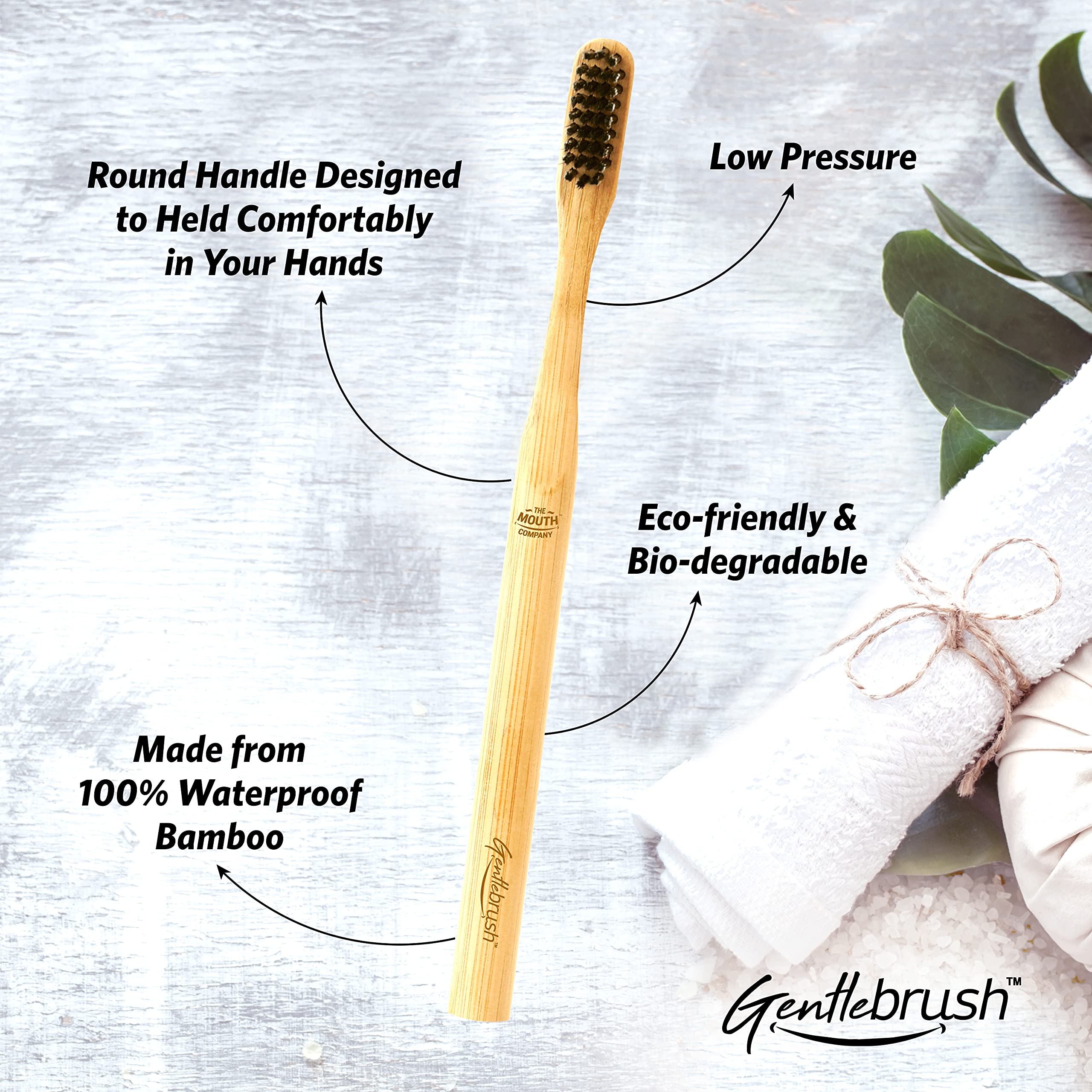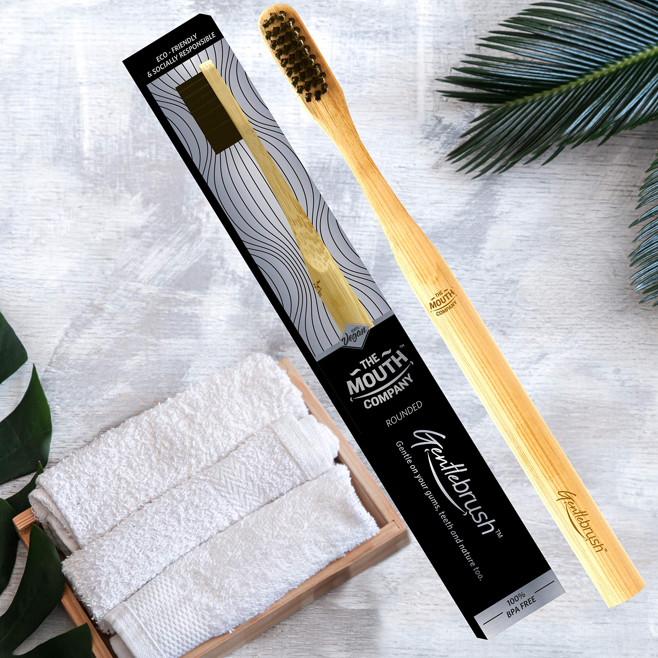The Mouth Company Bamboo Manual Toothbrush For Adults & Kids Round Handle Wooden Brush With Bpa Free Charcoal Activated Soft Bristles Biodegradable Anti-Bacterial & Eco-Friendly (Pack Of 1)