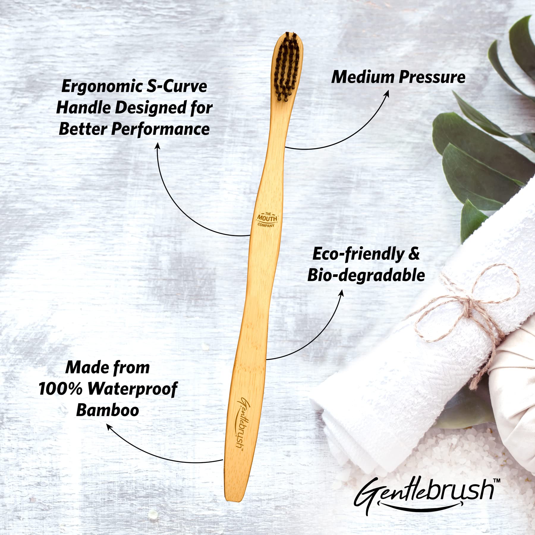 The Mouth Company Organic Bamboo Toothbrush Gentlebrush – Good for you Good for the Environment is Developed by Dentists and Research Analysts and is suitable for both Adults & Kids. With Gentlebrush start your day in a fresh new way. The low-pressure BPA-free bristles are infused with activated charcoal which helps in better whitening and prevents foul breath fighting plaque and bacteria. These bamboo toothbrushes are 100% Biodegradable Anti-Bacterial Eco-friendly and ready to complement your oral regime perfectly for better oral health and lifestyle. This bamboo toothbrush combo pack has one handmade natural S-Curve handle toothbrush for adults and one bamboo toothbrush for Kids which is designed to fit comfortably in your hand while making it easier for you to clean your teeth. It has a handle that gives it a comfortable grip for better cleaning.