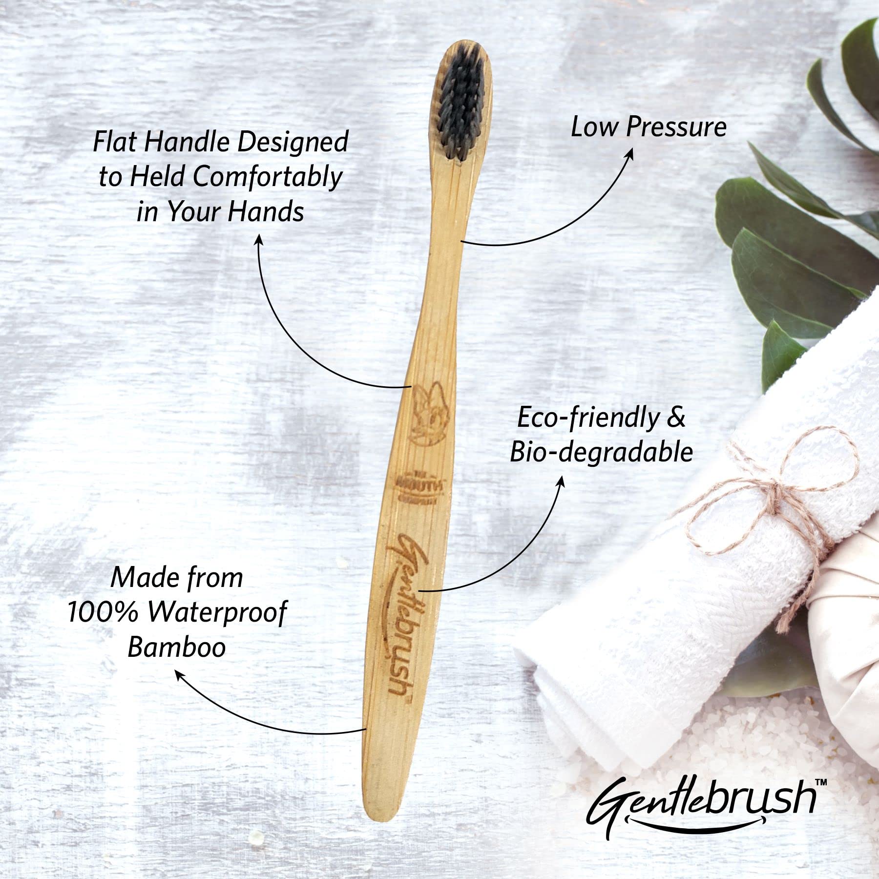 • With the added benefit of being better for the environment Gentlebrush cleans just as well and lasts as long as your plastic toothbrush. It is easy to use and carry around. In case of travelling it is the perfect addition to your eco-friendly kit.