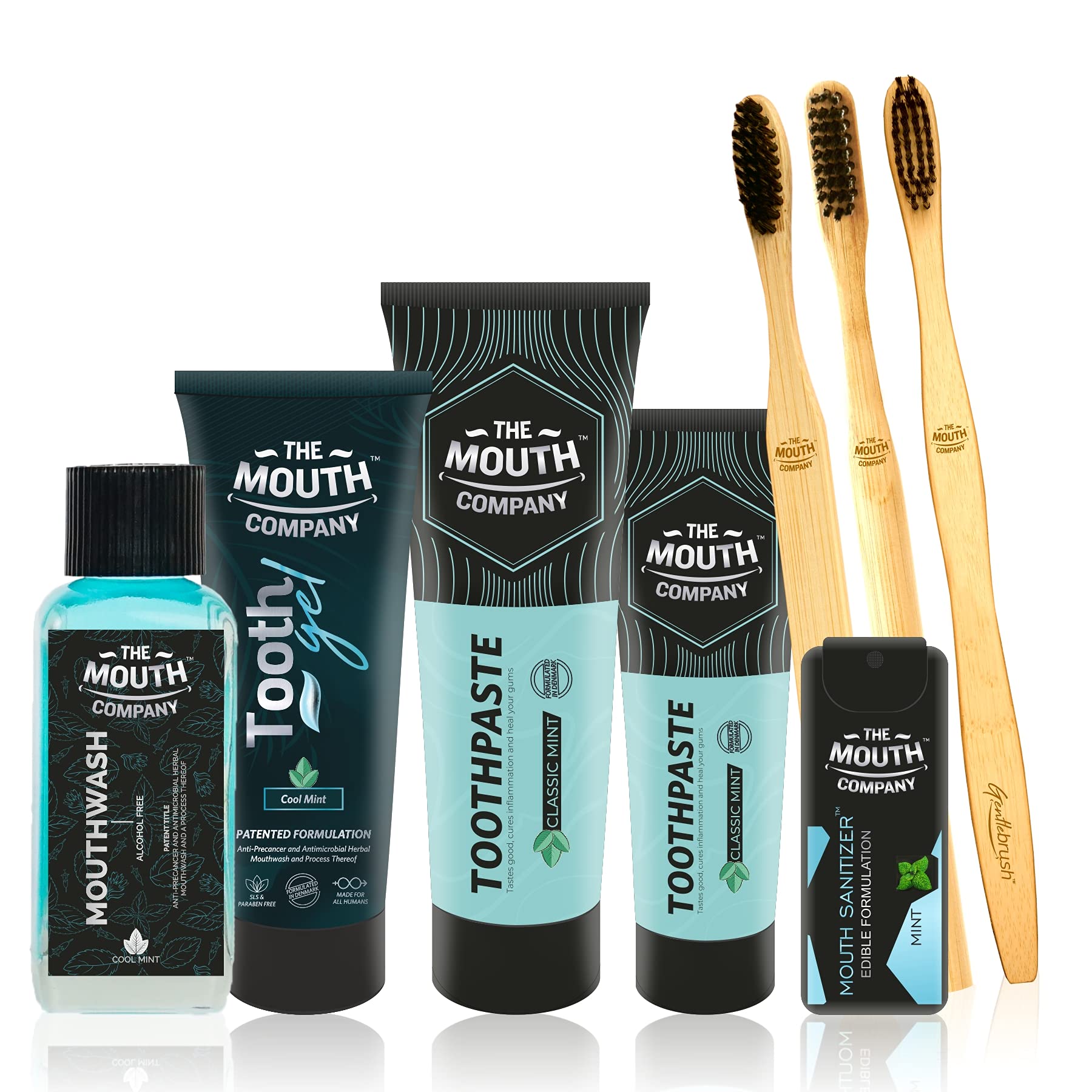 The Mouth Company Premium Mint Oral-Care Collection | Gift Pack with Bamboo Toothbrush | Family Pack