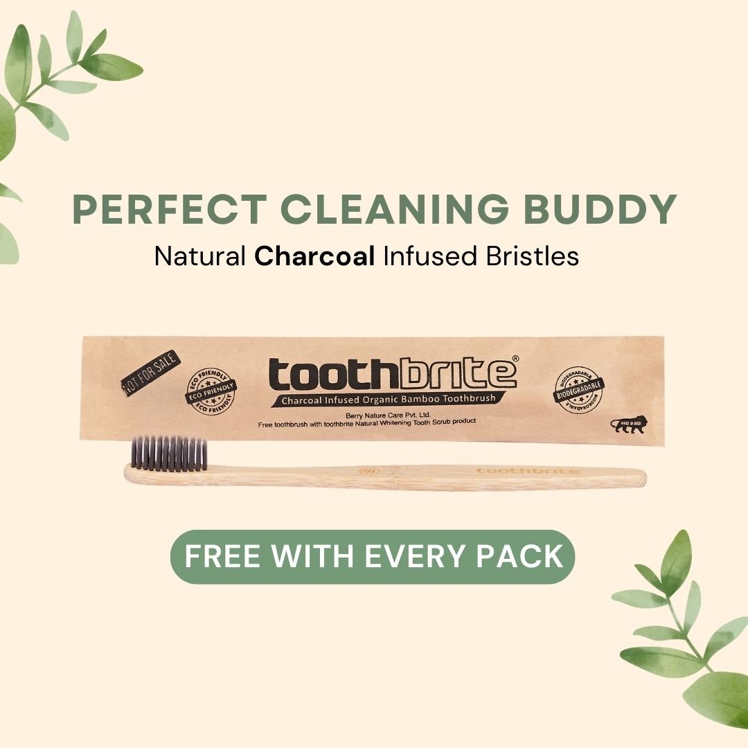 toothbrite Natural Whitening Tooth Scrub | Gel Toothpaste |Deodorises breath | Cool Mint Flavour| No Peroxide |No Paraben |Patented Formula with Organic Bio Silica & Carbon |Non Abrasive| With Free Bamboo Toothbrush | Pack Of 2 | 100g EachPatented Formula
