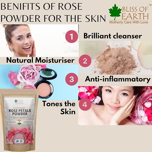 Bliss of Earth100% Pure Natural Rose Petals Powder | 453GM | Great For Face & Skin