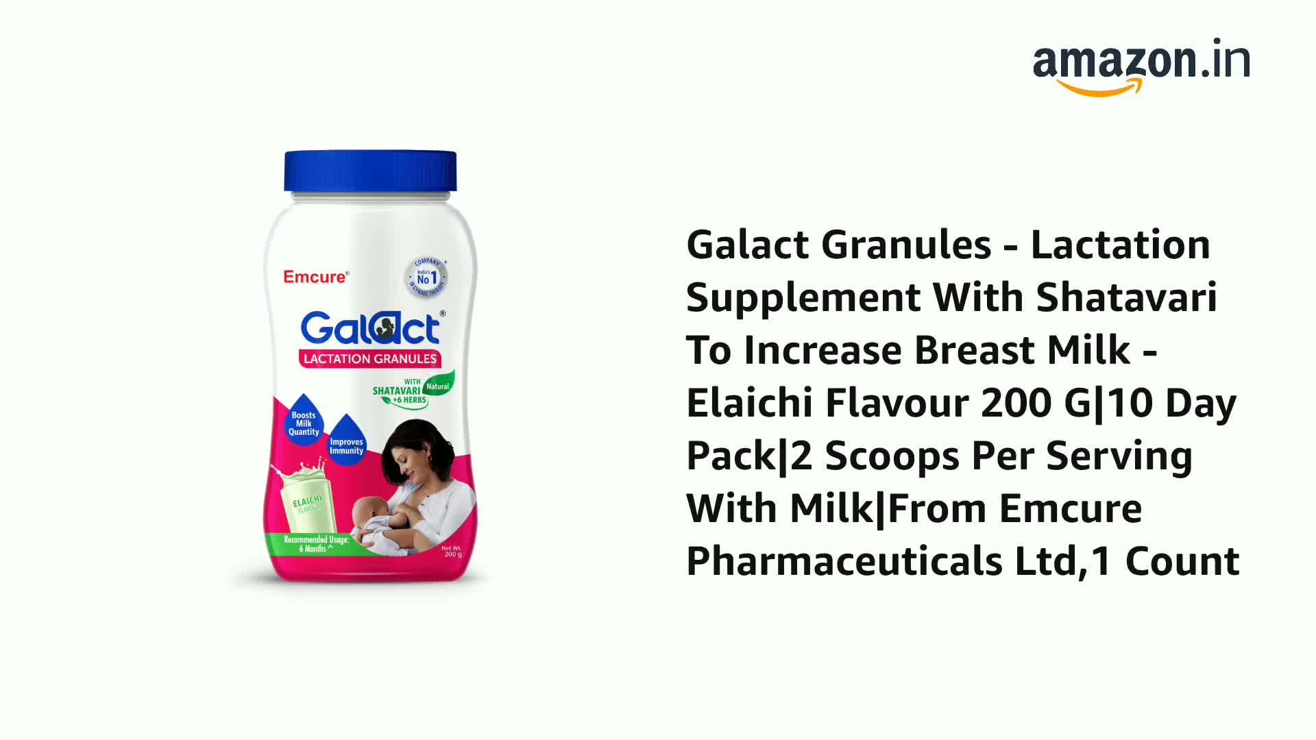 Galact Granules - Lactation Supplement With Shatavari To Increase Breast Milk - Elaichi Flavour 200 G|10 Day Pack|2 Scoops Per Serving With Milk|From Emcure Pharmaceuticals Ltd,1 Count