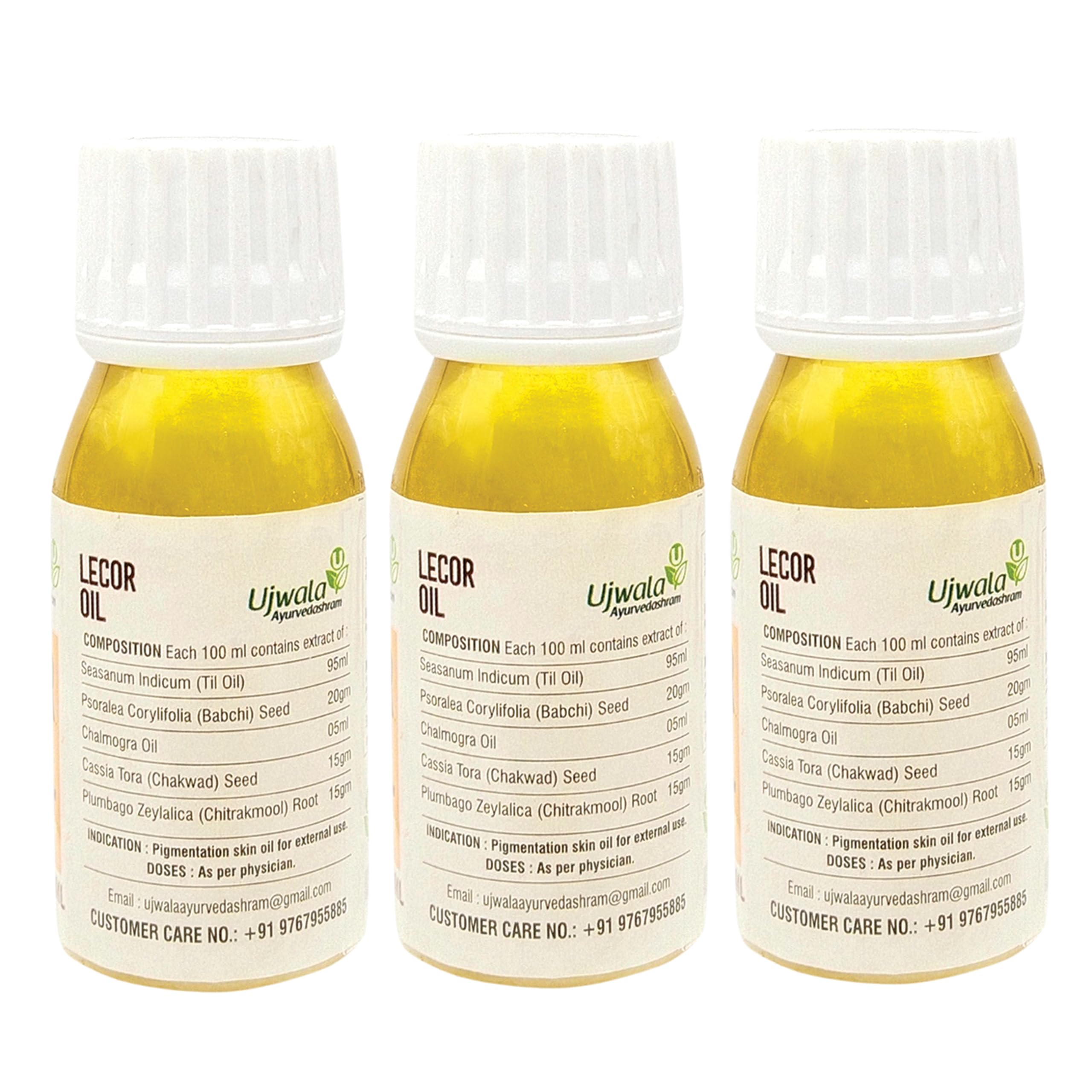 Lecor Oil Pack of 3 (50 ML) I Ayurvedic remedy for Vitiligo I Leukoderma Treatment I Need to use with Livcon Capsule and Lecor Capsule