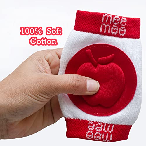 Mee Mee Soft Baby Knee/Elbow Pads for Crawling, Anti-Slip Padded Stretchable Elastic, Breathable Cotton Comfortable (Pack of 2, Red)