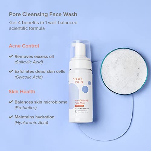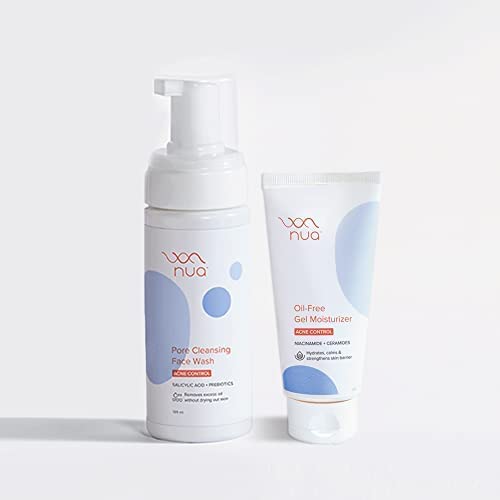 DAILY ACNE CONTROL: Contains 1 X Pore Cleansing Face Wash that removes excess oil without drying out your skin 1 X Oil-Free Gel Moisturizer that hydrates calms and strengthens the skin barrier KEY INGREDIENTS: Acne Control = SALICYLIC ACID + GLYCOLIC ACID NIACINAMIDE + CERAMIDES. Skin Health = PREBIOTICS + HYALURONIC ACID OARWEED + VITAMIN E. Our Acne Control Essentials only have clinically proven ingredients pH-balanced formulations no parabens & sulphates no added colour and is co-created with acne-expert dermatologists WHY NUA ACNE CONTROL: As the experts in periods and hormones we understand that your skin goes from dry to oily to sensitive all in one monthly cycle. Our well-balanced formulations take care of all your skin needs holistically and ensure that your skin remains not just acne-free but also really healthy throughout the month Nua is Made Safe Certified by Safe Cosmetics Australia. Safe Cosmetics endorses brands that pledge to exclude and restrict potentially toxic and irritating chemicals and clinically test their formulations to ensure that they are free from contaminants and are suitable for application to human skin. Nua follows ethical manufacturing processes which means from supply chain to laboratory