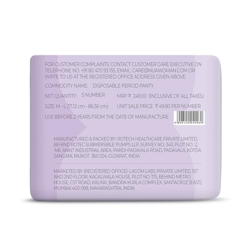 Nua Overnight Disposable Period Panties | Pack of 5 | (M - L) | Heavy Flow Absorbency | Leakproof Protection | Discreet & Secure | Breathable | No Rashes | No Discomfort