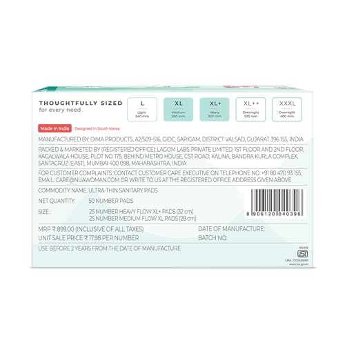 • 2 SIZES IN 1 PACK: 25 Heavy flow (XL+ - 320mm) and 25 Medium flow (XL - 280mm). Comes with 50 individual biodegradable Secure Shield Covers that are easy to carry. These are not just discreet but also help in secure worry-free disposal.