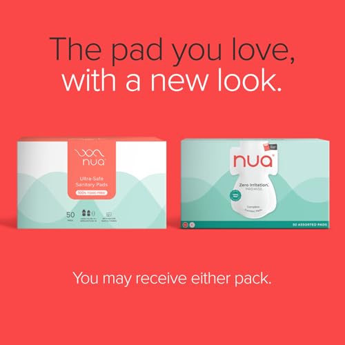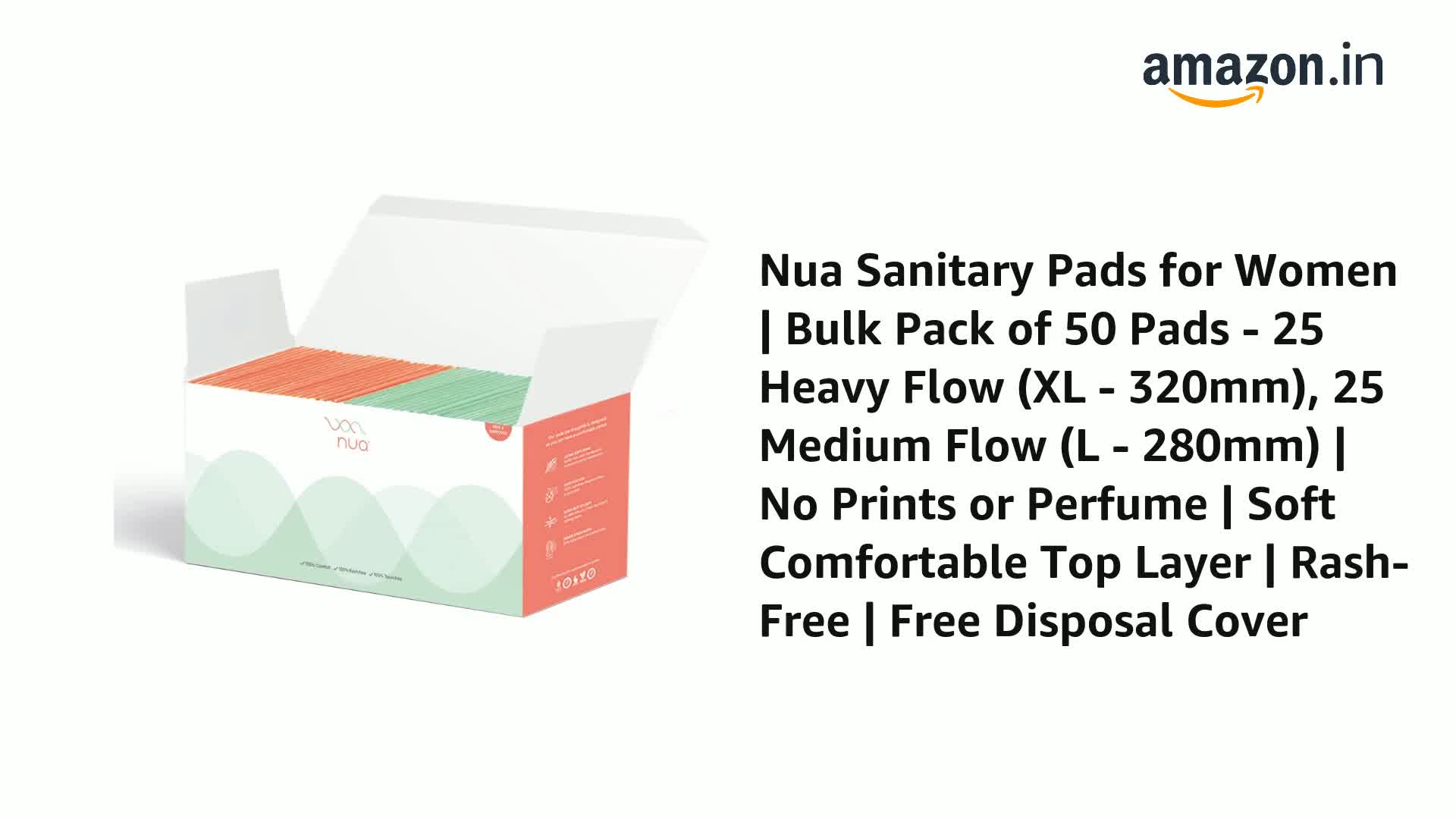 Nua Complete Comfort Sanitary Pads for Sensitive Skin | Pack of 50 Pads (25 Heavy Flow, 25 Medium Flow) with Disposal covers | Zero Irritation | Comfortable All-Day Protection | Ultra-Thin | Super Absorbent | No rashes | 50% Wider Back | 100% Toxic-Free,