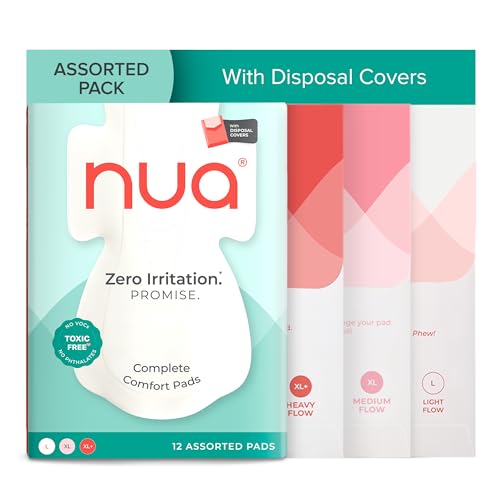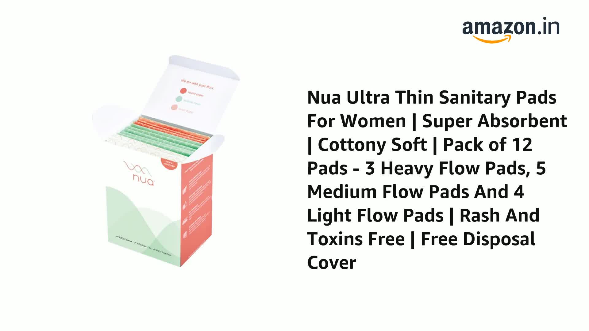 Nua Complete Comfort Sanitary Pads for Sensitive Skin | Pack of 12 Pads (3 Heavy Flow, 5 Medium Flow, 4 Light Flow) with Disposal covers | Zero Irritation | Comfortable All-Day Protection | Ultra-Thin | Super Absorbent | No rashes | 50% Wider Back | 100%