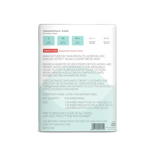 • 3 SIZES IN 1 PACK: 3 Heavy flow (XL+ - 320mm) 5 Medium flow (XL - 280mm) and 4 Light flow (L - 240mm). Comes with 12 individual biodegradable Secure Shield Covers that are easy to carry. These are not just discreet but also help in secure worry-free dispo