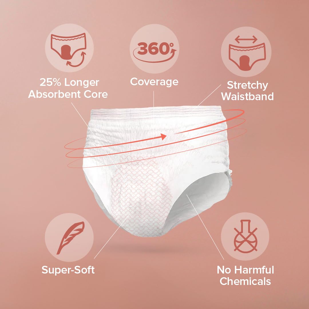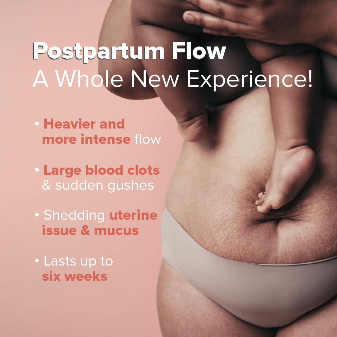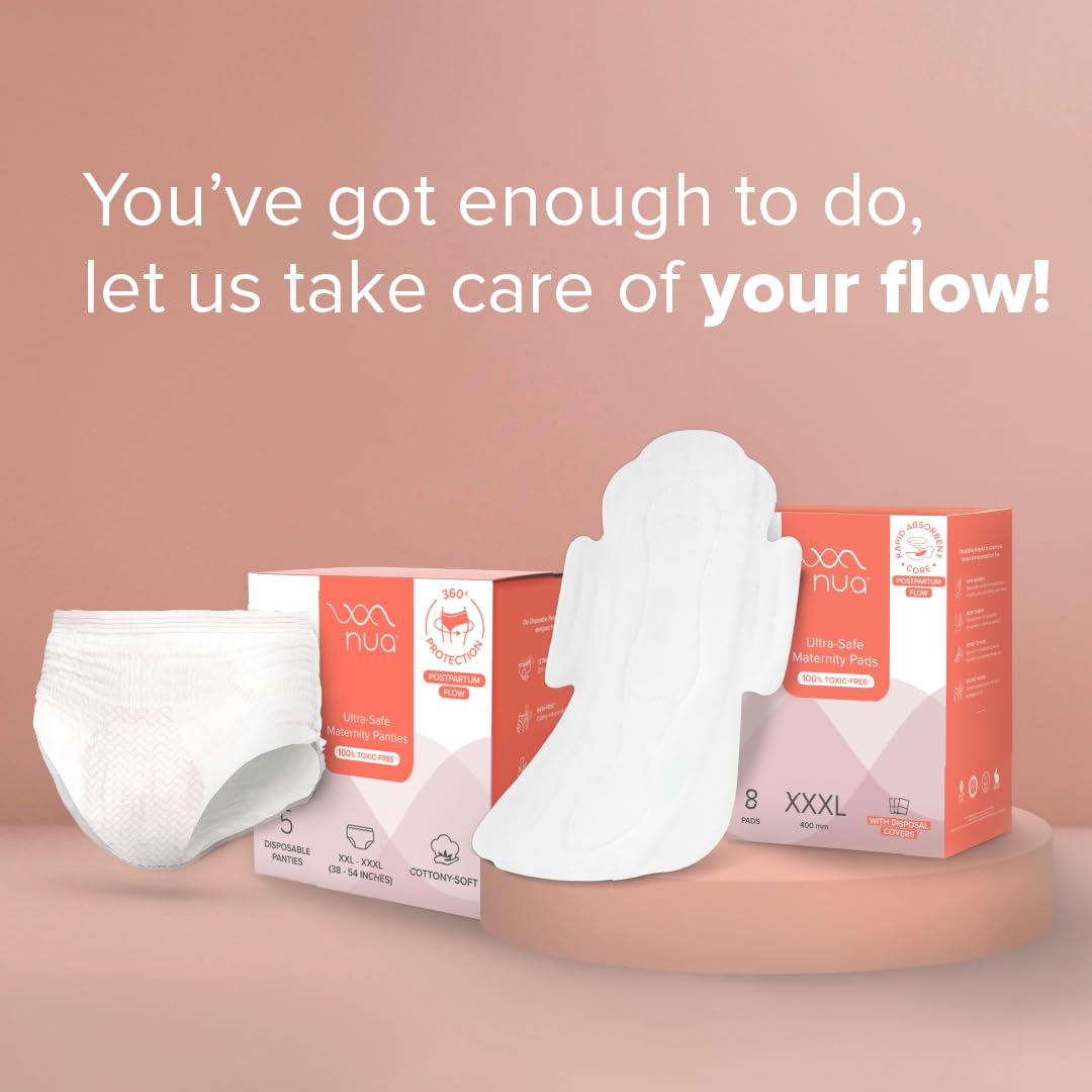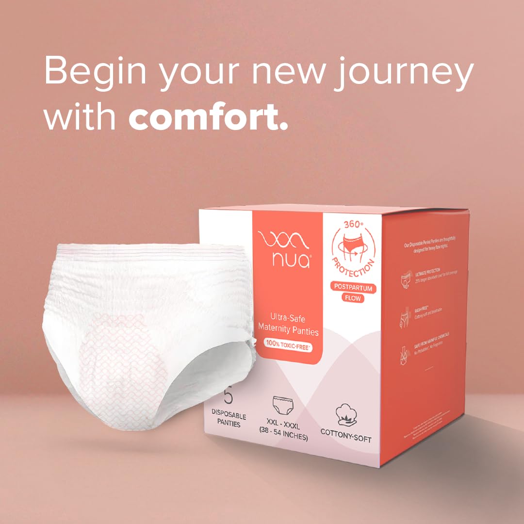 Nua's Ultra-Safe Maternity Panties (XXL-XXXL) provide 360-degree coverage for complete protection during heavy postpartum bleeding. Featuring a 25% longer absorbent core they offer superior absorbency for managing gushes and shedding ensuring you stay dry and comfortable. The super soft breathable top sheet is gentle on the skin while Made-Safe certification ensures they are free from harmful chemicals making them a safe reliable choice for postpartum recovery.