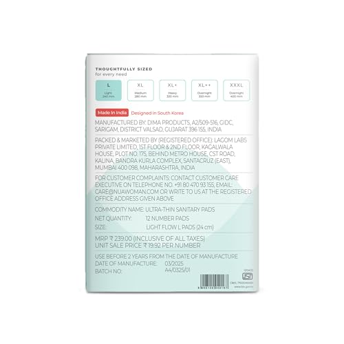 Nua Ultra-Safe Sanitary Pads For Women | 12 Ultra Thin Pads | Light-L | Safe on Skin | Toxic-Free & Rash-Free | Unscented | Leakproof | With 12 Secure Shield Covers| Made Safe