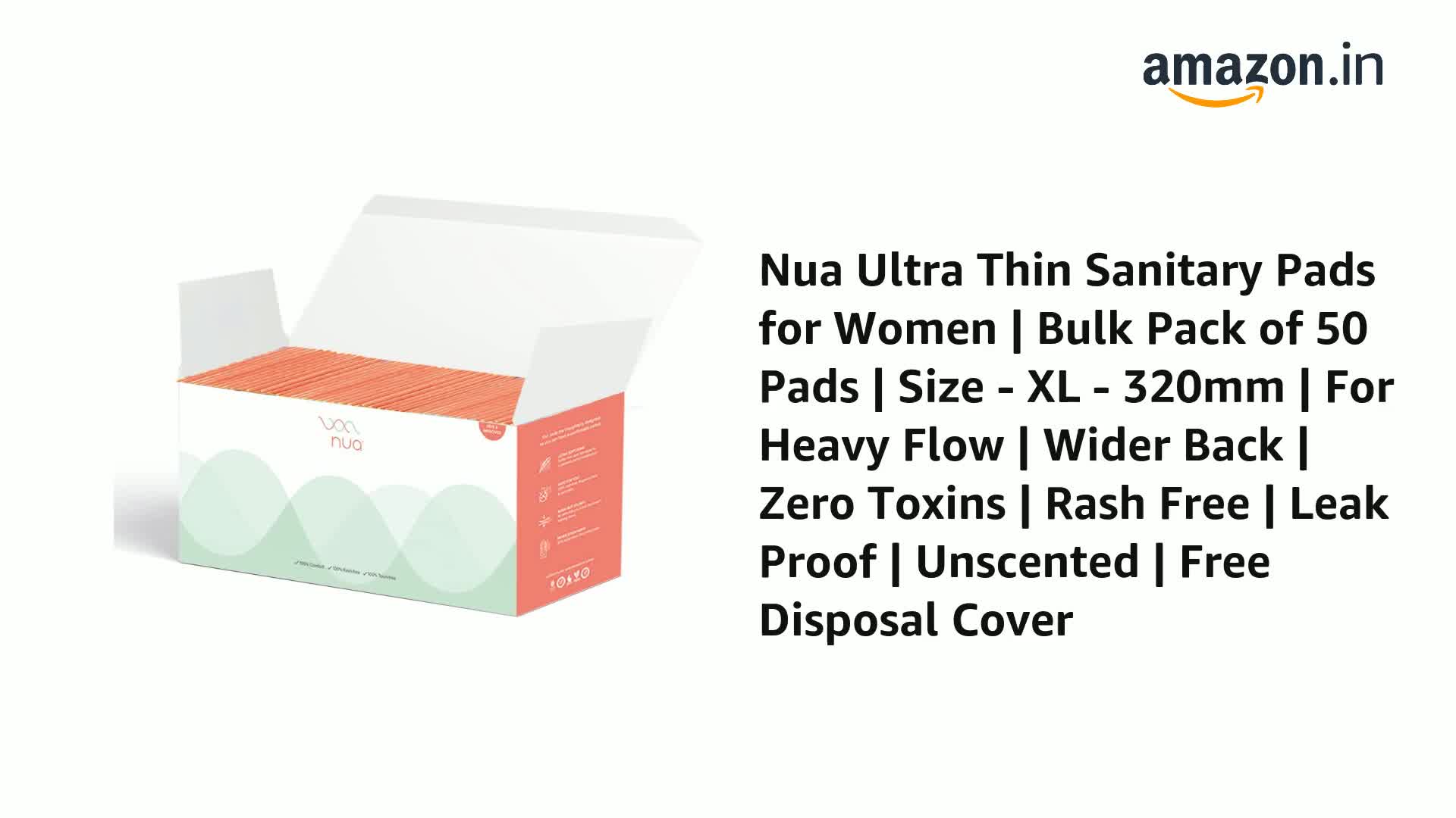 Nua Complete Comfort Sanitary Pads - Designed for Sensitive Skin | Pack of 50 pads for Heavy flow, with Disposal covers | Zero Irritation | Comfortable All-Day Protection | Ultra-Thin | Super Absorbent | No rashes | 50% Wider Back | 100% Toxic-Free, Derma