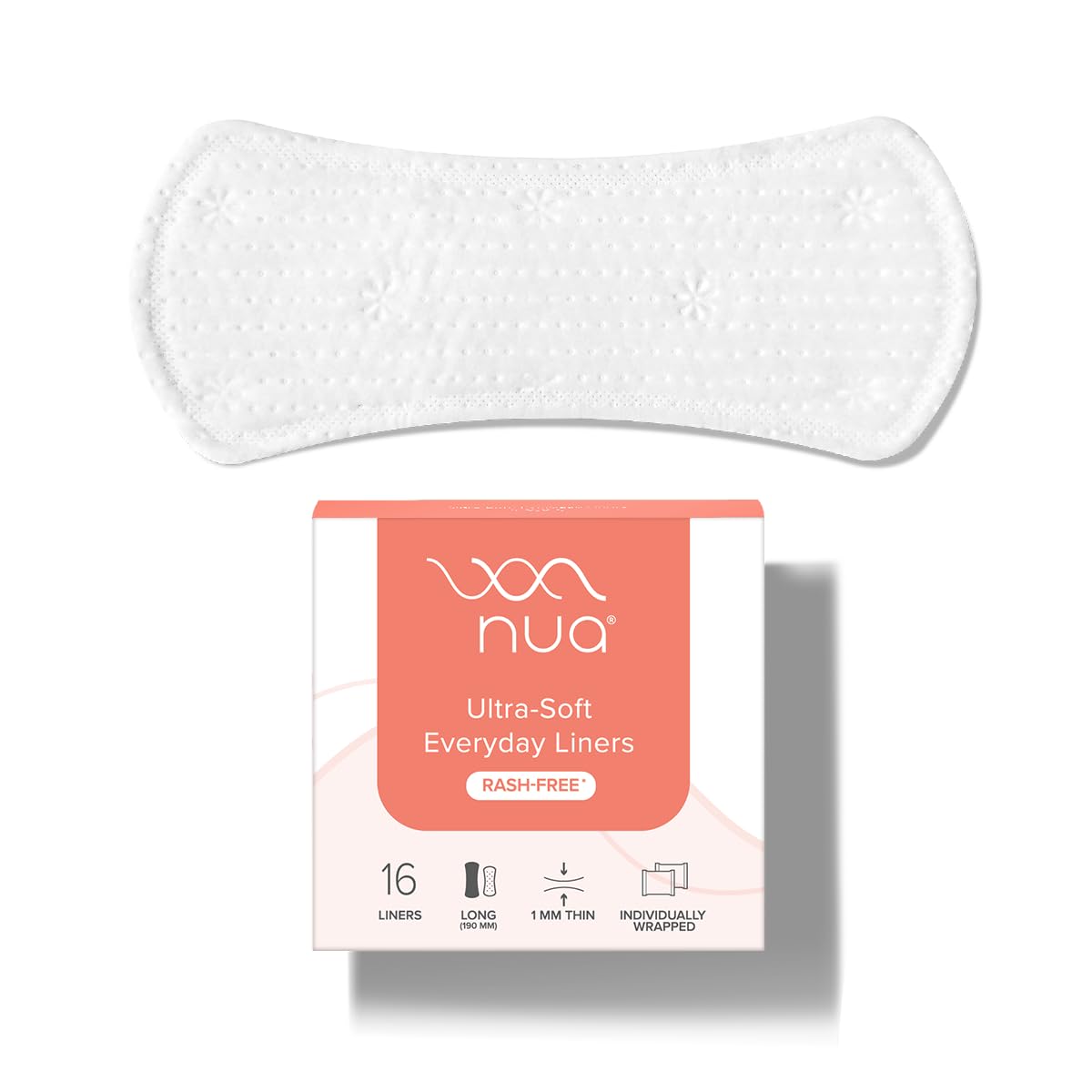 Stay fresh and comfortable all day with Nua Ultra-Soft Panty Liners. Perfect for daily use these liners are 190mm long providing just the right coverage to keep you dry and confident. Designed to protect against unexpected discharge and leaks they keep you feeling fresh throughout the day. Each liner comes with an individual disposable cover making them easy to discard. Plus they're rash-free toxin-free and gentle on your skin. Choose Nua for a reliable and comfortable experience making it a must-have for your daily hygiene routine.