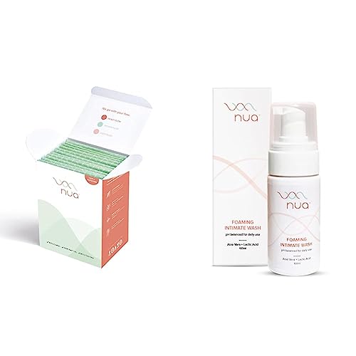 Nua Sanitary Pads For Women | Safe on Skin | Toxic-Free & Rash-Free | Unscented | 12 Ultra Thin Pads | Medium-XL | Leakproof | With 12 Paper Disposal Pouches| 50% Wider Back| Made Safe|Nua pads with the new and improved design are made of superior quality non-woven fabric with a super-absorbent core. The sanitary pads do not have any harmful chemicals prints or perfume on the top layer to avoid rashes and come with wider backs for full coverage. The pack contains three different sized pads for 12 medium flow - 280mm and each sanitary pad comes in paper based hygienic disposal covers for a hassle-free period experience. Nua Ultra Thin Sanitary Pads are made of superior quality non-woven fabric with a super-absorbent core. The sanitary pads do not have any harmful chemicals prints or perfume on the top layer to avoid rashes and come with wider backs for full coverage. The pack contains three different sized pads for three different flows (heavy medium and light) and each pad comes in a free paper-based hygienic disposal covers for a hassle-free period experience. Nua is Made Safe Certified by Safe Cosmetics Australia. Safe Cosmetics endorses brands that pledge to exclude and restrict potentially toxic and irritating chemicals and clinically test their formulations to ensure that they are free from contaminants and are suitable for application to human skin. Nua follows ethical manufacturing processes which means from supply chain to laboratory all ingredients are safe and healthy and we consider it the single most important factor in establishing good practices and building consumer trust."Nua Foaming Intimate Wash | Enriched with Aloe Vera and Lactic Acid | Toxin-free Paraben-free and Sulphate-free | Anti-Bacterial and prevents infections | Prevents Dryness Itchiness And Irritation | Balances pH | 100mlNua Foaming Intimate Wash is a gentle cleanser specially formulated to eliminate infection-causing bacteria while preserving the good ones you need for a healthy vulva. Our Intimate Wash is formulated with zero parabens and sulphates making it perfect for daily use. It is packed with the goodness of lactic acid (maintains optimal pH range of 3.5-4.5) aloe vera (acts as an anti-microbial agent) ashwagandha (boosts hydration) manjistha (acts as an antioxidant) and licorice (acts as an antibacterial agent).