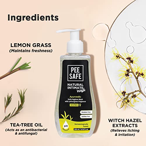 Carefully crafted with natural exquisite ingredients Pee Safe natural intimate wash provides targeted and other health benefits without negatively impacting on the natural vulvovaginal microbiota. Its enriched with the wondrous witch hazel extracts an anti-irritant with soothing properties. It o contains tea tree essential oil; palasa (butea fronds) which prevents white water discharge and s delicate skin and cluster fig (ficus glomerata) useful against urinary tract disorders.