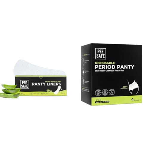 HomeHealth & PersonalPersonal CareWomen WellnessPee Safe Panty Liners For Women Daily Use with Aloe Vera - 20 Liners + Pee Safe Disposable Period Panties for Women Leak Proof | L-XL | Pack of 4