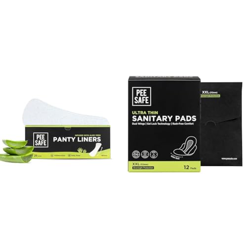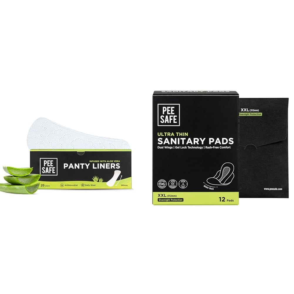 HomeHealth & PersonalPersonal CareWomen WellnessPee Safe Panty Liners For Women Daily Use with Aloe Vera - 20 Liners + Pee Safe Ultra Thin Sanitary Pads For Women | 12 Pads For Rash Free Periods