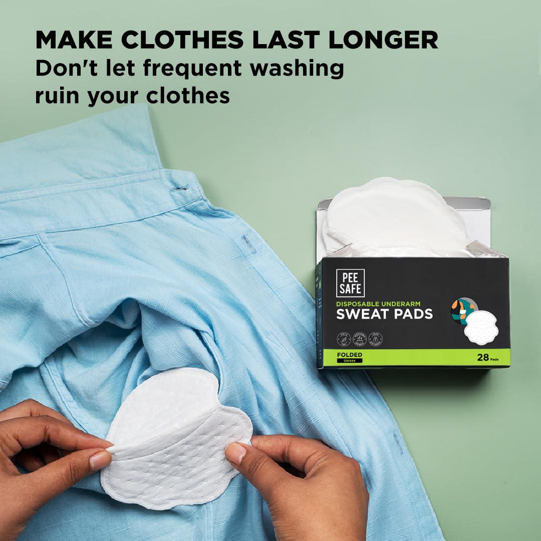 Pee Safe Sweat Pads For Underarms Women & Men (7 Pairs X 2) 28 Pads | Folded | Prevents Stains | Absorbs Sweat & Unpleasant Odour | Breathable And Deodorizing | Self Adhesive Glue