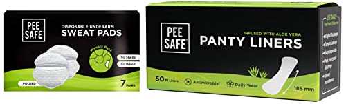 PEESAFE Aloe Vera Panty Liners (Pack of 50 Liners) | Curvy Design For Extra Comfort & PEESAFE Disposable Underarm Sweat Pads (Pack of 14) - Folded | Prevents Stains
