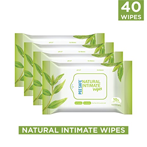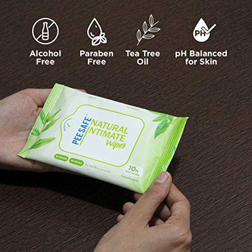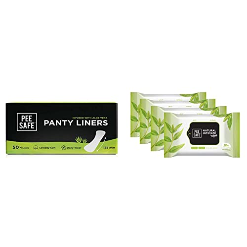PEESAFE Aloe Vera Panty Liners (Set of 2, 50 Count) + Pee Safe Natural Intimate Wipes - 10 Count (Pack of 4)