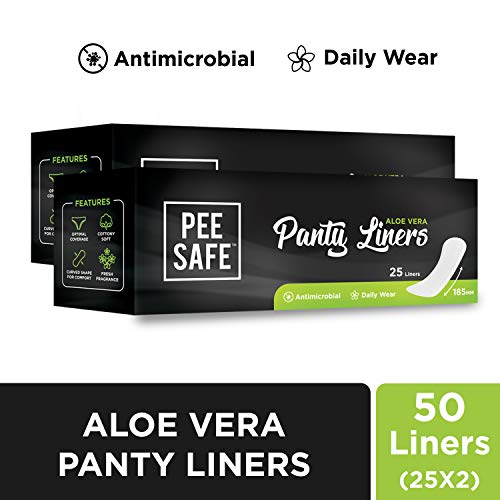 Pee Safe Aloe Vera Panty Liners for Extra Comfort (Set of 2 50 Liners)Pee Safe panty liners keep you dry and fresh all day long. Each liner is crafted with a cottony-soft surface infused with aloe vera that lets you enjoy your day without worry of a little flow. Liner's antimicrobial properties protect you from infection while keeping you fresh and clean from Vaginal discharge Tampon leakage Surprise periods and Urinary Incontinence.