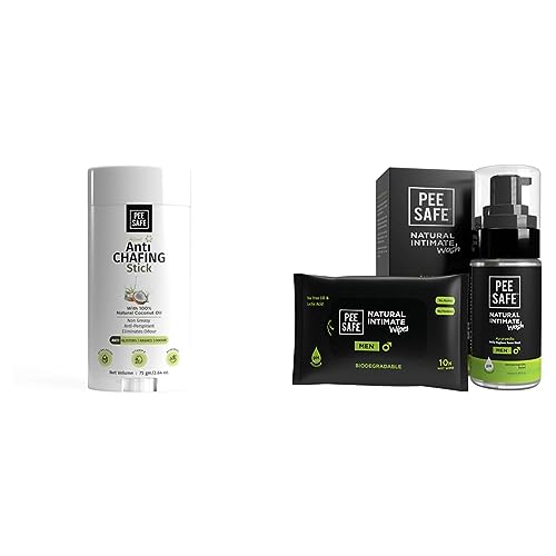PEESAFE Anti Chafing Stick (75gm) & Pee Safe Intimate Wash (100ml) & Intimate Wipes (Pack of 10) | pH Balanced Pack For Ever Lasting Freshness | 100% Paraben And Sulfate Free COMBO