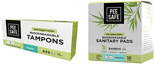 PEESAFE Pee Safe 100% Organic Cotton Tampons | For Heavy Flow & Organic Cotton Biodegradable Sanitary Pads, Overnight | Superb Absorbency|Long Lasting Protection|Skin Friendly | Comfortable