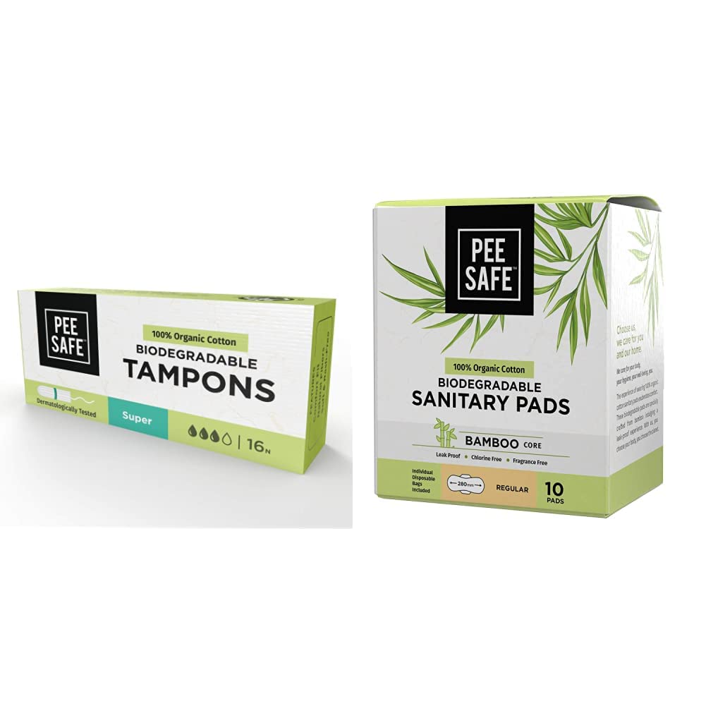 PEESAFE Pee Safe 100% Organic Cotton Tampons | For Heavy Flow & Organic Cotton Biodegradable Sanitary Pads Regular |Superb Absorbency | Long Lasting Protection|Skin Friendly | Comfortable