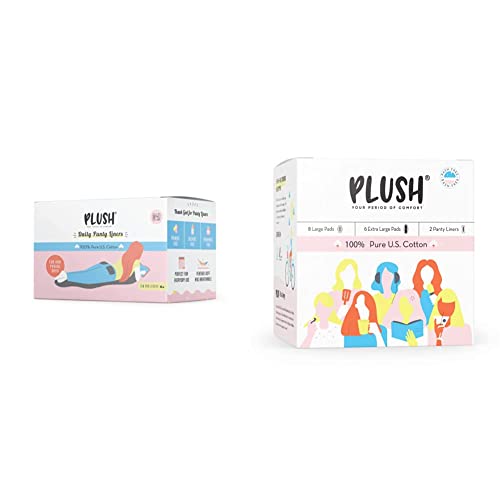 Plush 100% Pure US Cotton Daily Natural Ultra Thin Panty Liners for Women & 100% Pure US Cotton Ultra-Thin Rash Free Natural Sanitary Pads for Women | Vegan & Paraben Free | For Normal-Sensitive Skin