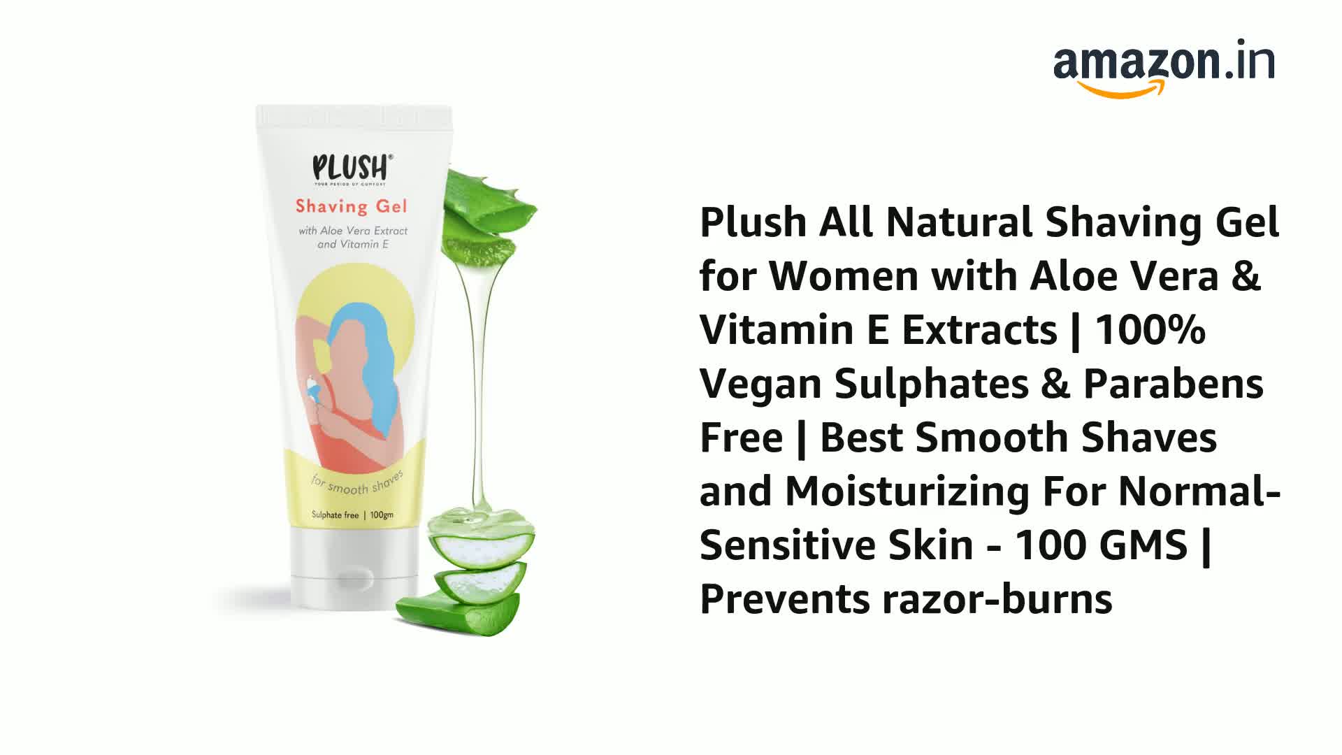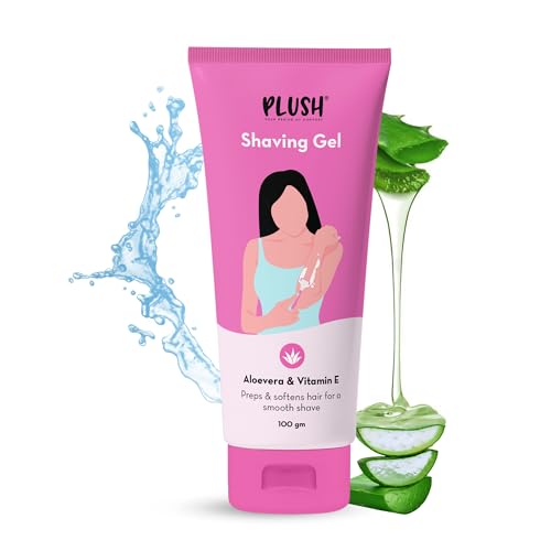 Plush All Natural Shaving Gel for Women with Aloe Vera & Vitamin E Extracts | Free from Sulphates & Parabens | 100% Vegan | Best for Smooth Shaves & Moisturizing | For Normal-Sensitive Skin - 100gms