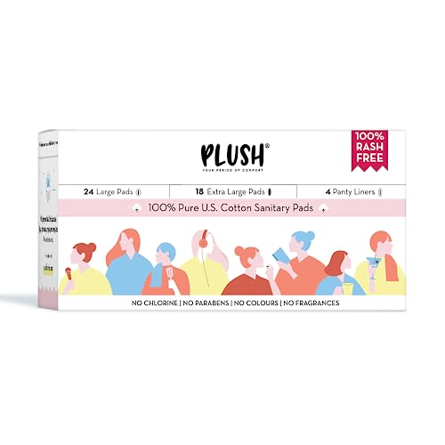 Plush Ultra-Thin Sanitary Pads For Women 42 Cotton Sanitary Napkins | 18 Medium Flow XL + 24 Light Flow L + 4 Panty Liners For Rash Free Periods | Pure U.S. Cotton PadsCrafted with 100% Pure U.S. Cotton the Plush Ultra-thin Natural Sanitary Pads are designed to give you hassle-free and leak-free periods. Super smooth and breathable our feather-light design is created with innovative multi-layer absorption technology to keep you feel secured. You can now comfortably say good-byes to those rashes thanks to our Pure US Cotton topsheet which adapts effortlessly to your underwear and offers a rash-free experience throughout. Each pad of this variant now comes with an individual biodegradable pouch for easy carry and disposal. Free of fragrance paraben and chlorine we always wish to provide natural ingredients which provide real performance.Plush Ultra Thin Panty Liners For Women Daily Use 40 Liners 150mm | Pure US Cotton Liner Pads For Rash Free Periods | Soft Cotton Surface For Comfort On Non-Period Days | No Toxins & Paraben FreeThese daily panty liners are made of cotton material. It has count of 40 (2*pack of 20). It is ideal for women.