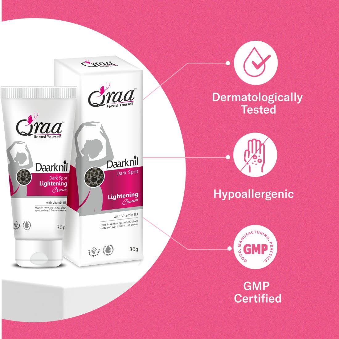 Qraa Daarknil Dark Spot Cream is an advanced formulation that s melanin production and soothes skin to reveal fairer and lighter skin tone. These products can be used on the neck underarms knees elbows knuckles and thighs. Qraa Daarknil Dark Spot Skin Polisher. This new age scrub makes it super easy to remove dark patches of skin from your knees elbows neck and inner thighs. It is made with natural ingredients that have the power to effectively polish the rough darkened skin. The primary function of this product is to exfoliate and polish the skin to remove the dead skin layer that has formed throughout the years. Qraa Daarknil Dark Spot Skin Polisher is made with the power of Citrus Lemon Peel Licorice Root Aloe Vera Leaf Shea Butter Coconut Oil and Olive Oil. The combination of these ingredients have a powerful cleansing and exfoliating effect on dark spots. Ingredients Citrus Lemon Peel- citric acid in the lemon peel is a powerful cleanser and polisher for all skin types. Licorice Root- licorice lightens the appearance of micro-scars in the dark patches and helps hyperpigmentation. Aloe Vera Leaf- a known soothing ingredient aloe vera makes the healing part of the exfoliator and s . Shea Butter- it locks the hydration into the skin and makes it supple. Preventing the accumulation of dead skin cells because of drying up. Coconut Oil- it acts as an emollient preventing the skin from damage and repairing the cell regeneration qualities of skin. Olive Oil- acts as a second barrier for the skin preventing drying up and cracking of the skin it o supports cell regeneration.