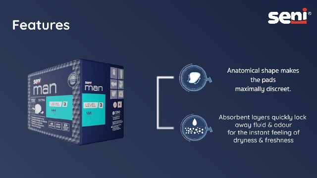 • Seni man bladder control pads designed for active men with moderate incontinence