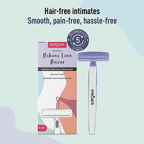 Sirona Bikini Razor for Women | Japanese Precision Shave, Nono-Blade Technology | For Irritation Free Shaving for Bikini Line | Chromium & PTFE-Coated | No Cuts | Safe & Hygiene – Pack of 1
