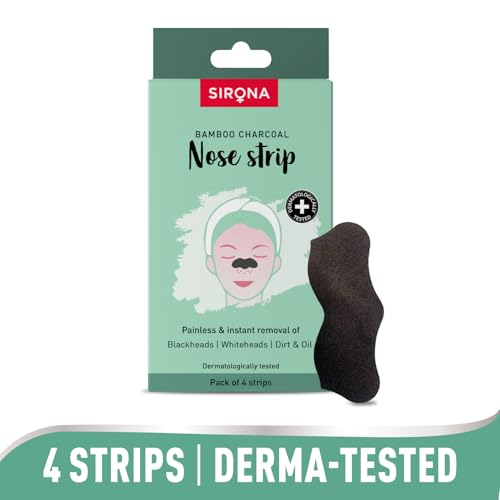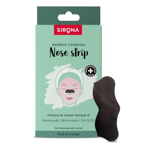 Sirona Blackhead Remover Bamboo Charcoal Nose Strips for Women – Pack of 4 | Painless & Instant Removal of Whiteheads, Blackheads, Pore Cleanser, Dirt & Oil