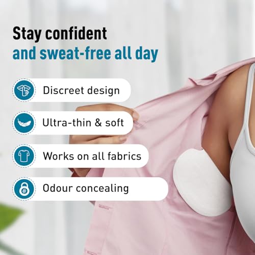 • EASY TO USE: Each underarm sweat pad comes with a self adhesive strip so that it can stick to the inside of the clothes without any hassles. Apply it along the seams of the garment and leave on for a while. When done just peel it off and dispose of it in